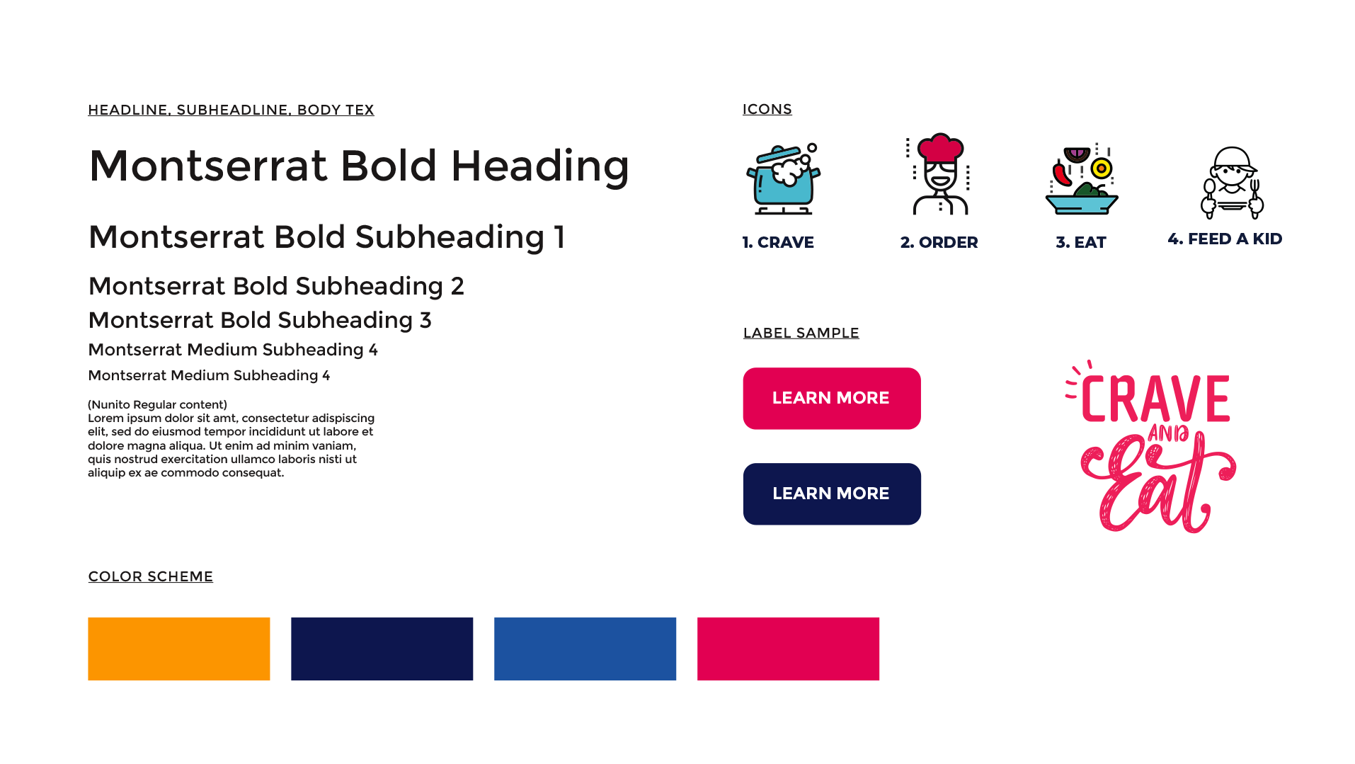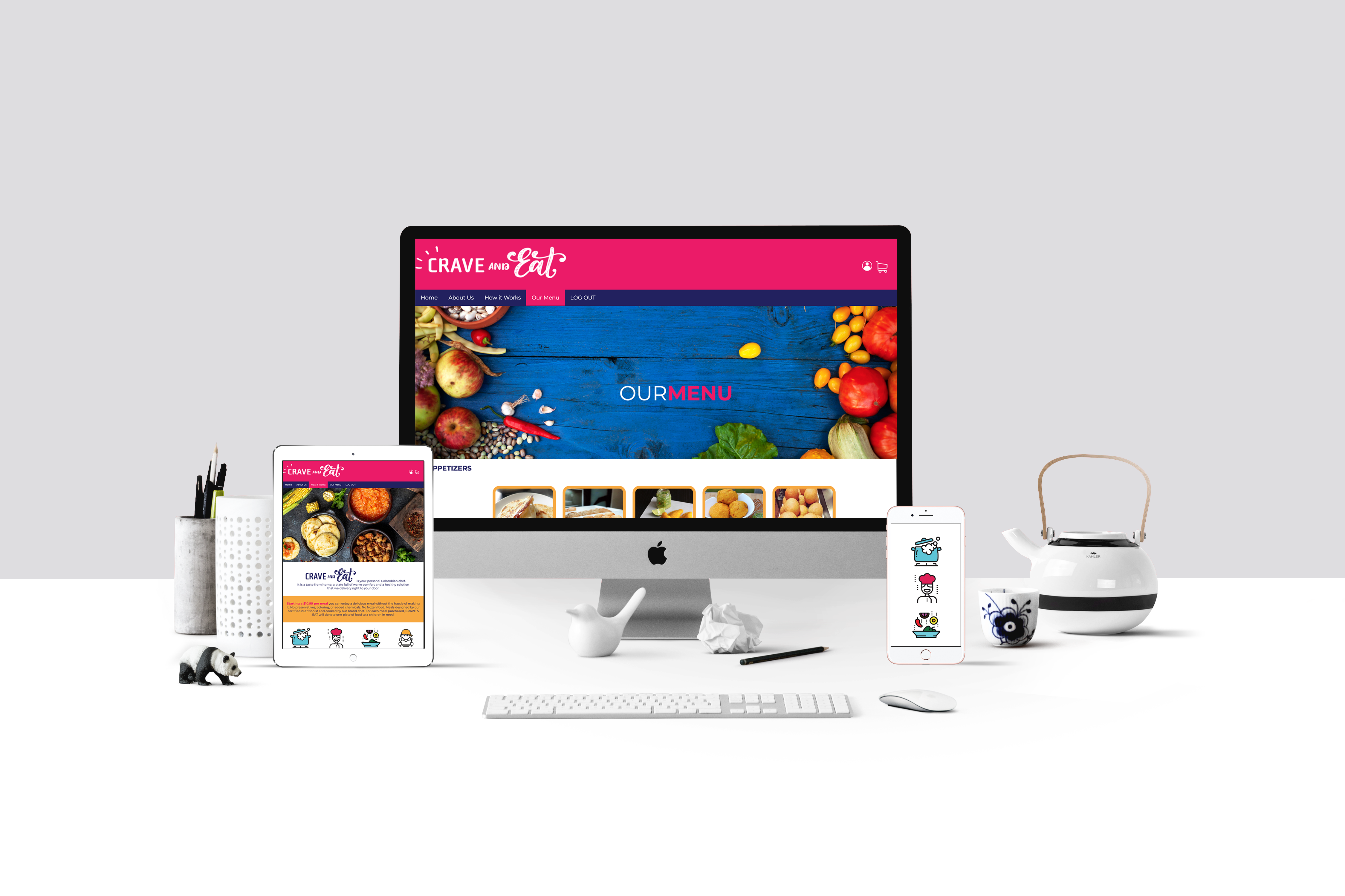 For the visual aspect I decide to used bright colors because they represent happiness and joy. I also used fun icons and images to captivate the users attention on the food and the purpose of the site.